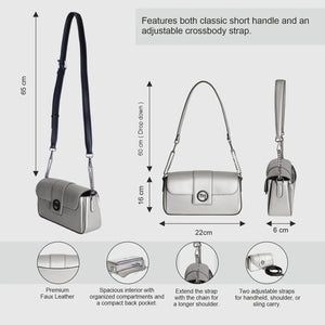 Enhance your look with this classy yet versatile sling bag, combining fashion and functionality. Its structured design, crafted from premium faux leather, is both stylish and eco-conscious, made partially from recycled materials. Compact yet spacious, it holds all your essentials effortlessly. Perfect for office, work, brunch, evening events or parties. It features two straps for three carrying options: handheld, over the shoulder, or as a sling.
