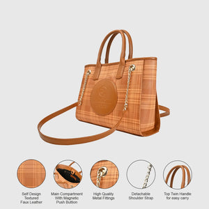 Step into the spotlight with Blossom, the glamourous handbag designed for women who dare to dazzle. Its elegant checkered design exudes sophistication and charm, making it an instant head-turner. Perfectly sized for all your essentials, it comes with a comfortable shoulder sling that ensures effortless carrying. Blossom isn’t just a handbag – it's your statement of style, confidence and elegance. So why wait? Grab this beauty and let your style blossom!