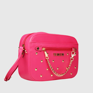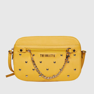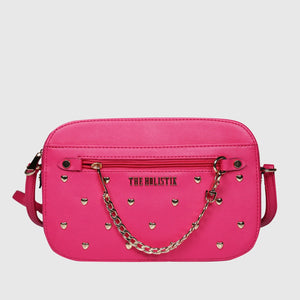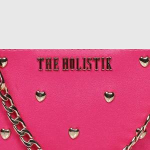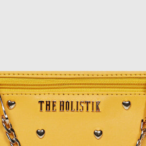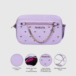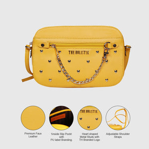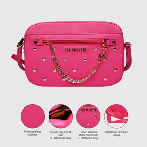 Bonita studded Cross Body Sling from THE HOLISTIK is an exceptional zippered bag adorned with metal heart-shaped studs, adding a touch of uniqueness to its design. The secure closure with a zipper ensures the safety of your belongings, and the inclusion of one interior pocket enhances its practicality. This versatile bag is suitable for a wide range of occasions, making it a perfect companion for various activities.