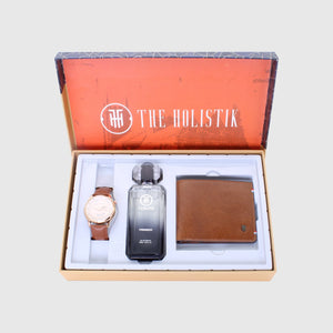 Code II, A premium collection of man's watch, EDP, and a wallet that can make an excellent gift for any occasion. Designed to cater to man's needs and preferences, making it a thoughtful and practical choice. The watch is not only a functional timepiece but also a stylish accessory that can complement any outfit. The perfume adds a touch of elegance and suaveness to the wearer's overall fragrance, and the RFID-protected wallet provides a practical way to keep important items such as cash and cards organized.
