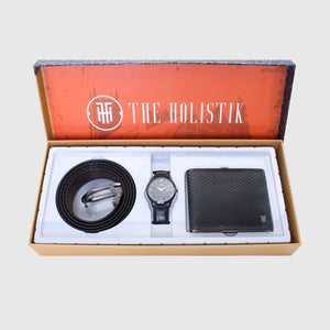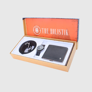 Elegance, The perfect combination of a man's watch, belt, and wallet makes an excellent gift regardless of the occasion. A thoughtful and practical choice that caters to the needs and preferences of a man. The watch is a functional timepiece and a stylish accessory that can complement any outfit. A man's belt is a practical and versatile accessory that not only serves a functional purpose but also adds a touch of style. The RFID-protected wallet provides a practical way to keep important items such as cash and cards organized.