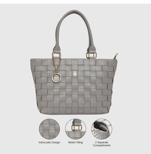 Emira, Get ready to slay the fashion game with this feminine tote bag! This faux leather beauty comes with an Intrecciato design that's sure to turn heads. It’s got plenty of space to fit all your essentials, so you can easily conquer the day. The zippered compartment and twin top handles make it the ultimate wingman for your daily adventures. So, go ahead and rock that effortlessly stylish look with The Holistik's feminine tote bag!