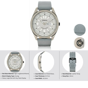 Entice, Elegance, aesthetics and quality these words can define this men's timepiece. The clean, simplistic dial and contrasting hands offer great legibility and accuracy. This watch has a large, classy dial, with a separate display for day & date. With its sleek design and impeccable craftsmanship, it is sure to add a touch of class to any outfit. The watch is powered by a precise Japanese Quartz movement, making it a must-have in any man's collection.