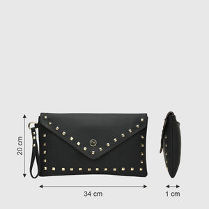 Make a statement with the Envelopia Evening Bag, designed for your night-out essentials. It accommodates all your necessities with thoughtfully organized compartments while maintaining a slim profile. The metallic button closure adds a touch of luxury, while the interior zipper pocket keeps valuables secure. Perfect for everything from formal events to dinner parties, this clutch comfortably holds your phone, keys, cards, compact makeup, and cash.