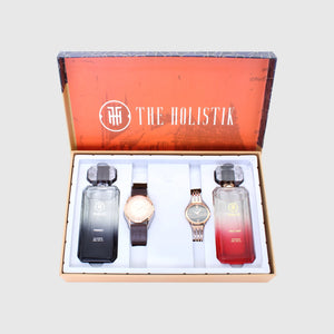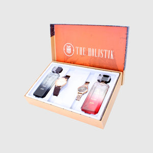First Love II, A love saga that evokes feelings of warmth, comfort, and nostalgia. With its unique blend of selected products by The Holistik, that takes you on a journey back to those cherished moments. Includes dazzling watches for a man and his lovely lady, a true investment that will stand the test of time. And fragrances that are indispensable accessories for men and women to express their individuality and personal style. Treat yourself or someone special to the gift of First Love and experience the beauty of first love all over again.