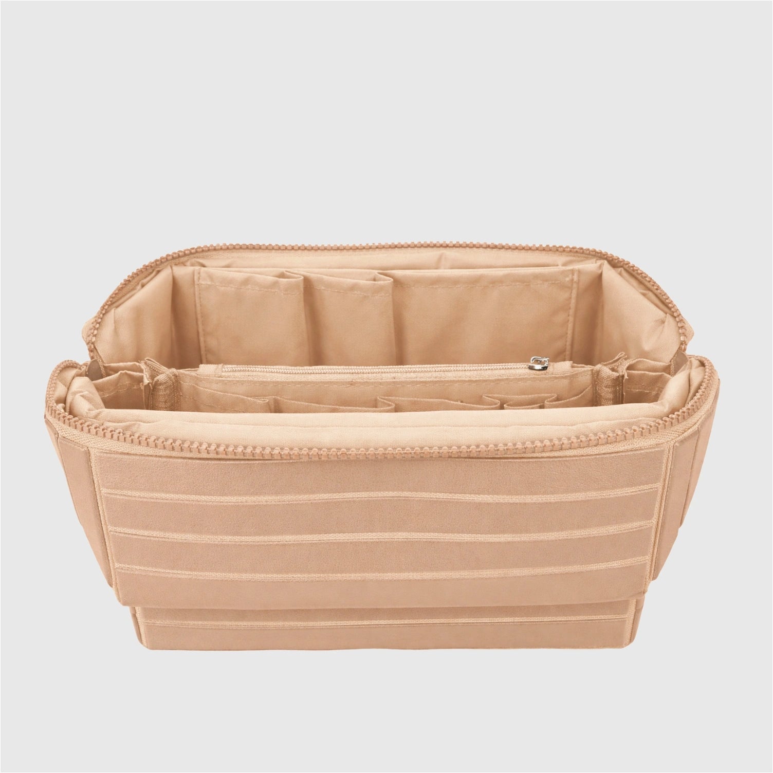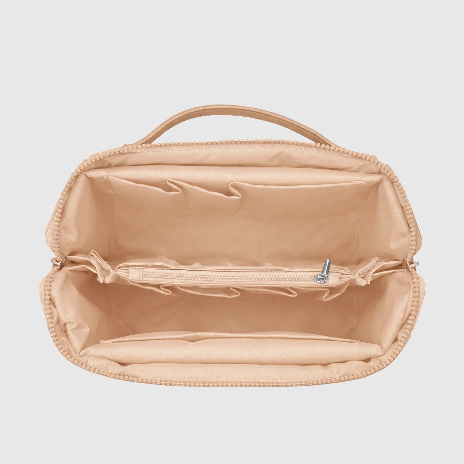 This multi-purpose expandable organizer case is thoughtfully designed to neatly store makeup, toiletries, and tech accessories in one compact, protective form. The structured exterior keeps cosmetics, skincare, chargers, cables, and small gadgets safe and organized, while the smart box-style design maximizes space without adding bulk. Featuring a detachable central zippered divider for small essentials, it allows flexible organization based on your needs—whether separating beauty products, tech accessories, or daily must-haves. The sturdy top handle ensures easy carrying, making it perfect for travel, home storage, or everyday use.