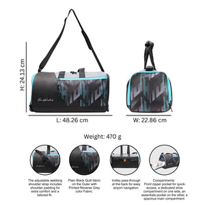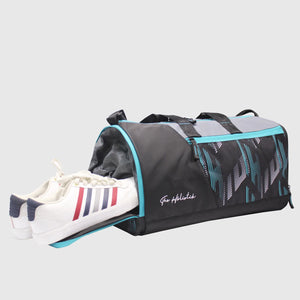 Upgrade your fitness and travel game with Flexora Gym Duffel Bag – designed for style, strength, and everyday performance. Crafted with durable water-resistant fabric, this lightweight duffel bag offers ample storage space for your gym gear, sports essentials, or weekend travel needs. The sleek black base with aqua detailing gives it a modern, sporty look that stands out. Featuring a spacious main compartment, easy-access side pockets, and an adjustable shoulder strap, this multi-purpose duffel bag is perfect for workouts, sports, travel, or daily commutes. Built for the modern athlete and lifestyle enthusiast, it combines functionality with fashion.
