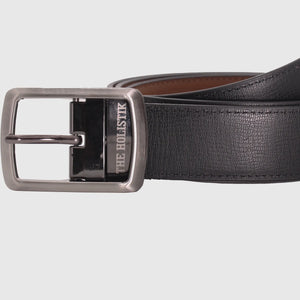 The Holistik, FlipSide Belt is a versatile men’s accessory crafted from premium PU leather, designed for effortless style transitions between formal and casual occasions. With its smart reversible strap in classic black and rich tan-brown, this belt transitions effortlessly from formal to casual looks. Finished with a sleek metallic buckle engraved with THE HOLISTIK, it’s the perfect blend of durability, functionality, and modern style.