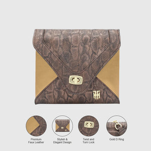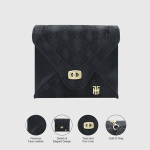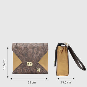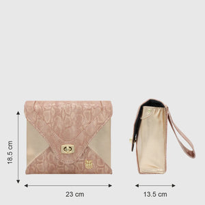 Glitter, is a women`s purse for all the essentials. This elegant women`s clutch will be an absolute hit with fashionistas. A zipper pocket inside makes it easy to store your money and other small items you may need. This stylish design will go with any outfit, from dressy to casual. The shiny dual tone finish of the purse will give a glamorous touch to your style statement.