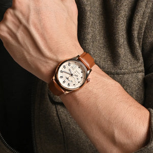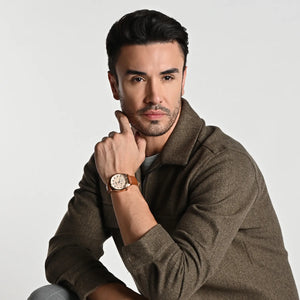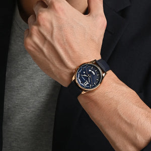 Gravity, Elegance, aesthetics and quality these words can define this men's timepiece. The clean, simplistic dial and contrasting hands offer great legibility and accuracy. This classic-style men`s watch features a large, multi-textured dial, with a separate day & date display. With its sophisticated look, it’s a pure masterpiece. With its sleek design and impeccable craftsmanship, it is sure to add a touch of class to any outfit. The watch is powered by a precise Japanese Quartz movement, making it a must-have in any man's collection.