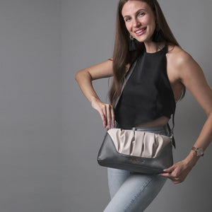 Ishante, this graceful party purse will turn heads at the next soiree. The beautiful pleated design stands out from the crowd. It brings a touch of glamour to every woman`s look and makes you feel confident. Ishante is everything you would need for a special occasion. A party purse that is worth the night.