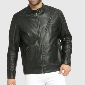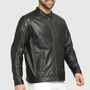 Step into the spotlight with our Knight Men's Black Jacket. Expertly crafted from genuine sheep leather, Knight boasts a sporty charm with signature detailing on the shoulders and arms. All secured with reliable YKK zippers. Designed for a slim, suave fit, this jacket will make you centre of attention wherever you go. It's a declaration of your daring spirit. Go on, own the night with Knight.