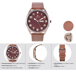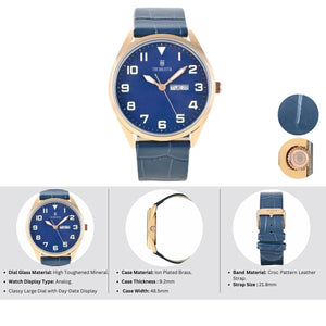 Limitless, Elegance, aesthetics and quality these words can define this men's timepiece. The clean, simplistic dial and contrasting hands offer great legibility and accuracy. This watch has a large, classy dial, with a separate display for day & date. With its sleek design and impeccable craftsmanship, it is sure to add a touch of class to any outfit. The watch is powered by a precise Japanese Quartz movement, making it a must-have in any man's collection.