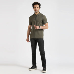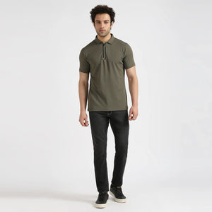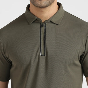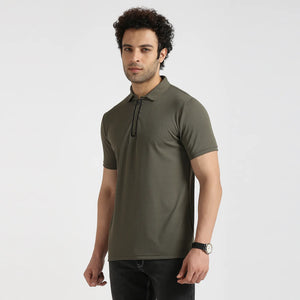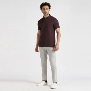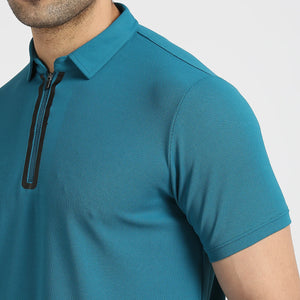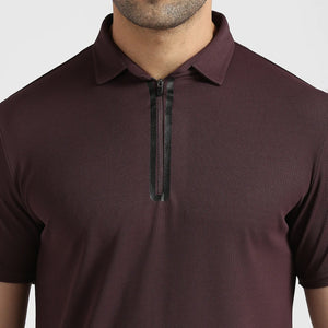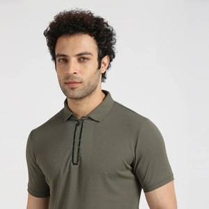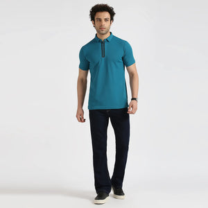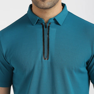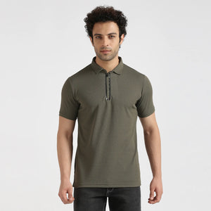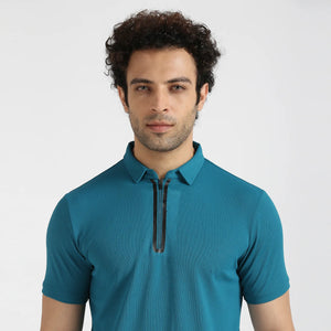 Nimbus Structured Solid Polo T-Shirt from The Holistik, essential offering refined comfort and versatile style. Crafted with a unique fine alpha knit-like weave and a skin-friendly Micro polyester blend, efficiently wicks moisture away from the skin for both breathability and durability. Whether navigating hot, humid conditions or simply seeking comfort, this half sleeve Polo T- Shirt guarantees a sweat-free experience and exceptional flexibility. Subtle rear reflective branding lends an understated touch of elegance, while branded side slit tapes provide a distinctive detail. Completing the ensemble are the Self- Fabric Collar and Cuff along with a matching zipper closure, adding an extra flair to your look.