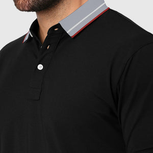 Panache Polo from The Holistik is a timeless wardrobe essential, offering refined comfort and versatile style. Crafted with a unique weave construction and made from skin-friendly Micro Fiber polyester blended with spandex, it's designed to efficiently wick moisture away from the skin, ensuring both Breathability and durability. Whether you're facing hot, humid conditions or simply seeking comfort, our polo shirt delivers a sweat-free experience and exceptional flexibility. Subtle rear reflective branding adds a touch of understated elegance, while branded side slit tapes provide a distinctive detail, complemented by the Contrast Multi coloured Jacquard collar & Cuff .