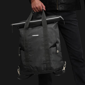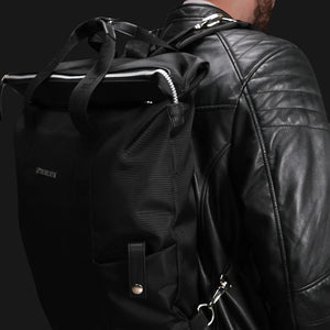Prime, The ultimate roll-top backpack that combines style and functionality. With its spacious main compartment and inside padded laptop section, you can easily carry all your essentials in style. The two front quick-access pockets provide convenient storage for your phone, keys, and other small items. The padded shoulder straps ensure comfort even during long commutes, while the stylish handle adds a touch of convenience. Whether you're heading to work or exploring the city, Prime is the perfect companion for the modern Traveler. Elevate your style and unleash your creativity with Prime.