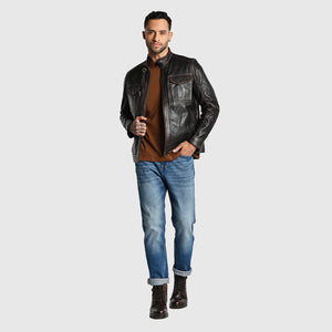 Rugged Genuine Leather Jacket for Men | Biker Jacket | Party Jacket | Black