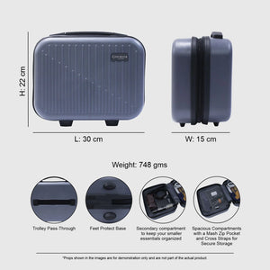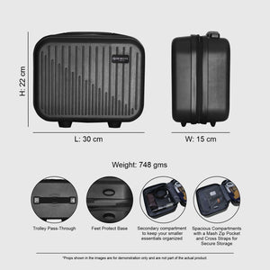 Introducing Shell-a sleek and compact hard-shell vanity travel bag with a modern, minimalist design. Made from durable, non-breaking Polypropylene material for the sturdy build, this bag is perfect for short trips, business travel, or everyday essentials. Its unisex design makes it a versatile choice for any traveller or a fashion enthusiast. Designed to be carried alongside your main luggage or even just as a case, it offers a secure and organized space for your essentials like toiletries, documents, gadgets, cosmetics and more. Ideal for frequent travellers and jet-setters.