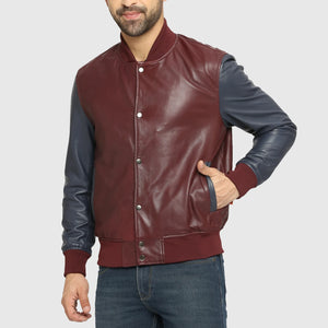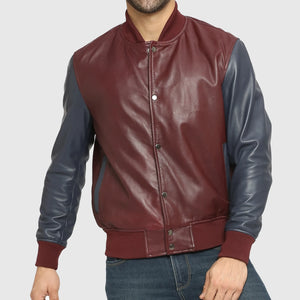 Swagger Men’s Genuine Leather Jacket | Sporty Leather Jacket | Cherry Brown