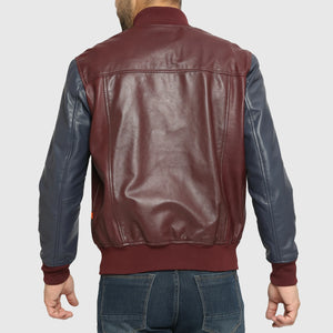Unleash your inner Maverick with our 'Swagger' men's bomber jacket! Constructed from genuine sheep leather, this jacket boasts a tantalizing cherry brown and deep blue combo, exuding a casual yet sporty vibe. With two side pockets, an inside lining pocket, and authentic YKK zippers, Swagger delivers on practicality too. Designed for comfort, built for adventure, and full of wit. Just like you.