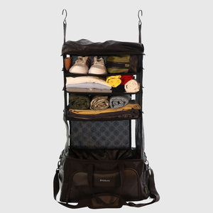 WANDERER, Shoulder bag is the perfect companion for your weekend getaways. The innovative design of this bag means it can be transformed from a shoulder bag into something that looks like portable shelving. A rubberized backing and resilient polyester material protect your personal items. Transform the Weekender Duffel bag in to an on-the-go 4 layer wardrobe. The WANDERER has all the features you need for short to medium work or leisure trips, making it perfect for any weekend outings.